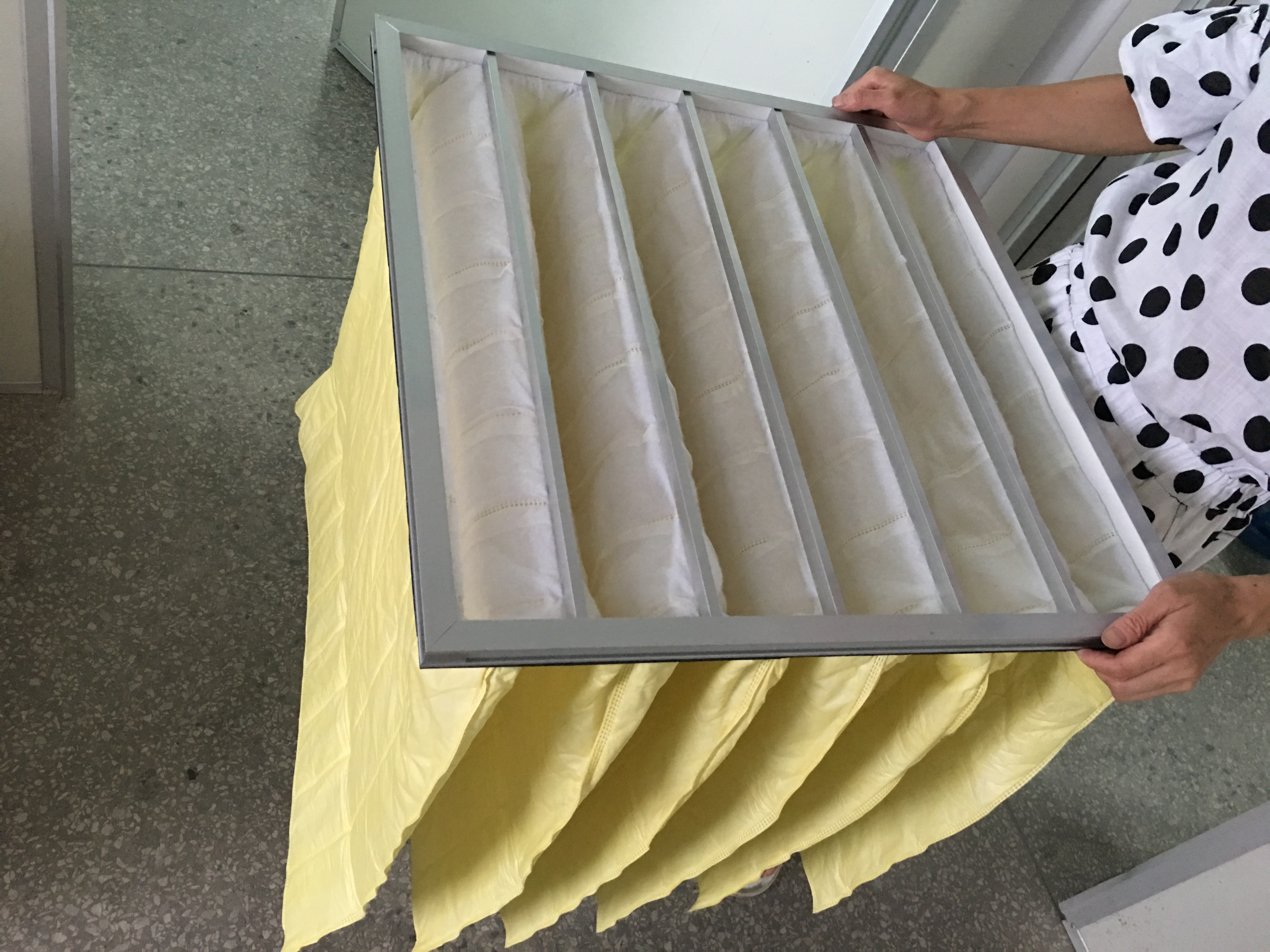 也稱為無紡布袋式過濾器,95%過濾袋,是中效袋式過濾器中效率較高的一種,它熔噴層厚度較厚,所以過濾的更干凈,用于潔凈室,新風(fēng)空調(diào)系統(tǒng)、新風(fēng)機組新風(fēng)柜的中段過濾,顏色為黃色,主要阻擋1-10μm顆粒粉塵,提高后面的高(hepa)效過濾器的使用壽命,建議3-6個月更換一次,當(dāng)表面的粉塵和內(nèi)袋的雜質(zhì)已無法清理時,已達(dá)到更換條件。